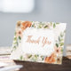 Express your gratitude in style with this elegant peach watercolor floral thank you card. Featuring soft hand-painted blossoms in warm autumn tones with leafy greenery, it’s a timeless choice for weddings, bridal showers, baby showers, or personal notes of appreciation.