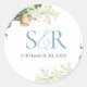 Elegant Peach Wedding Blue Floral Custom Classic Round Sticker