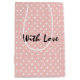 Elegant Peachy Pink Polka Dot Pattern With Love Medium Gift Bag