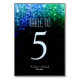 Elegant blue and green peacock colour shining lights on romantic bokeh background wedding table number card. This beautiful bokeh lights design is available in many different colours and you can request any colour of this design by email. Or contact me for any support in design customisation. Matching products available.