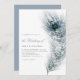Elegant Peacock Feather Teal Blue Script Wedding. A beautiful peacock feather in shades of blue and teal runs along the right hand side and the words are aligned to the left. Easily personaslie the text. A coordinating dusty blue is on the back.