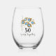 Elegant Peacock Feathers 50th Anniversary Stemless Wine Glass