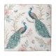 Elegant Peacock Floral Vintage (5) Ceramic Tile