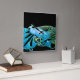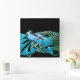 ELEGANT PEACOCK IN AQUA BLUE ,TEAL AND BLACK SQUARE WALL CLOCK