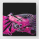 ELEGANT PEACOCK IN PINK FUCHSIA AND BLACK SQUARE WALL CLOCK