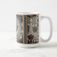 HERA Mug. Beautiful mug featuring a moody panelled design of peacocks and floral motifs. Vintage Art Nouveau inspired look. Generative Art design.