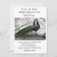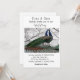 Capture the essence of elegance and natural beauty with this stunning wedding invitation featuring a pair of majestic peacocks perched gracefully on a rooftop. The vibrant plumage and intricate feather patterns create a breathtaking display. The background features bare tree branches against a cloudy sky.