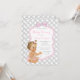 Pearl baby shower invitation with adorable baby girl wearing pink ruffle pants and string of pearls on a beautiful tufted pearl background with pretty pink bow background. This adorable pink pearl baby shower invitation is easily customised for your event by simply adding your details in the font style and wording of your choice. This is a printed design with no real pearls, tufting, glitter, etc.