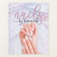Elegant, trendy appointment planner for nail technician featuring pearl background and handwritten calligraphy script ''nails by ' in bright purple colour. Personalise with a name on the front and details on the back.