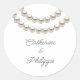 White Elegant Wedding Sticker featuring a silver pearl necklace in watercolor. It’s very easy to customise, with details of your personal details.