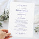 Elegant, romantic periwinkle blue and white wedding rehearsal dinner invitation design features a timeless traditional formal classic design. Borderless finish allows you to easily choose your favourite paper shape for the final look. A transparent background allows the beauty of your paper choice to be appreciated on the front and back of the card. Two decorative flourishes each containing a single heart beautifully surround the script. Personalise with your details in romantic lettering and script. For optimal results replace template details with your own details leaving space between paragraphs as in the example and capitalise where specified or if the word is a proper noun and normally capitalised. E-mail invitationsuites@gmail.com with questions or custom requests.
