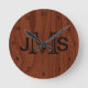 Elegant Personalised Monogram | Mahogany Wood Look Round Clock