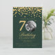 Elegant Photo 70th Birthday Gold Green Confetti Invitation