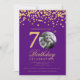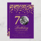 Elegant Photo 70th Birthday Gold Purple Confetti Invitation