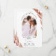 Delight your guests with this beautiful photo wedding save the date card. Design with your names framing your photograph displayed in an elegant arch shape. Beautiful terracotta watercolor leaves on the sides and modern hand written calligraphy details. On the back second image this time in attractive circular shape along with text area for any message you like (instructions for future details, or welcoming message like "Can't wait to see you there!") Simple and modern elegant style.