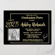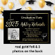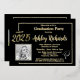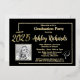 This elegant Graduation Party invitation features Real Gold Foil lettering against a black background and room for a photo of the honoree of this special occasion -- with 2025 in gold letters on the front of the card. The back of the card has room for three additional photos. Much to personalise to make appropriate for your own event. Any design questions, just send a message and we'll be delighted to assist. Also contact us if you wish the background colour to be changed to a school colour or your favourite colour.
