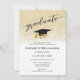 Elegant Photo Black Gold Script Graduation Party Invitation