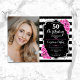 Elegant Photo Black Silver Pink 50th Birthday Invitation