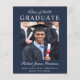 Budget-friendly simple and elegant dark blue graduation announcement featuring a photo of the graduate, his or her name and class year in a white script and his or her school, major and honours in modern white typography.
