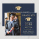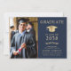 Elegant Photo Blue Gold College Graduation Party Invitation