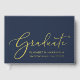 Modern blue graduation party guest book featuring your choice of real gold, silver or rose gold foil, "Graduate" in an elegant script and the grad's name, school and class year in simple typography. Customise your text on the spine and add a photo on the back cover.