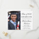 Elegant college graduation announcement and party invitation postcard featuring a photo of the graduate, their name and class year in script and their university, major and honours. On the back, add the grad party details.