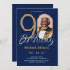 Elegant Photo Gold Navy Blue 90th Birthday Invitation