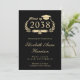 Elegant black college graduation party invitation featuring the graduate's class year in a laurel wreath crest with a grad cap topper and diploma, their name in a formal script, and their school, major, honours or future plans in classic serif typography. On the back, add a photo and the graduation party details.