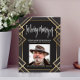 Create a special tribute to your loved one with this modern elegant gold photo funeral program. Design features single photo, golden frame, and details in modern lettering.