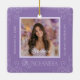 Commemorate a milestone 15th birthday with a personalised Quinceañera photo keepsake ornament. This stunning ornament features a double-sided design with her photo, name, date, and location of her celebration. Her name overlay can be re-size and re-positioned to suite her photo. A beautiful, modern way to display cherished memories from her special day. Shown in lavender and lilac but all colours can be edited to match her photo or decor. © Kimbellished, LLC