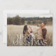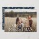Elegant photo modern minimal natural navy blue watercolor botanical typography Merry Christmas holiday flat card.