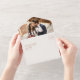 This elegant, timeless wedding invitation features a custom photo, and a simple laurel wreath framing the couple's initials. Inspired by 1920s wedding invitations, it blends classic formality with modern flair, using a traditional serif font, vintage calligraphy script and a clean arrangement. Personalise the template with the couple's names, monogram, ceremony details, reception address, and information — an all-in-one wedding invitation with a tear-off perforated RSVP postcard. You can also customise the background colour using the design editor tool. Printed colours: terracotta, brown, and off-white, ivory cream. Shop the collection for matching stationery and supplies for sale online!