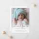 Elegant Photo Overlay Love Thanks Birth Announcement. Combine your birth announcement and thank you for gifts and cards so you can send on the one design. An informal set typography in black for the main heading Love and Thanks complementing the rest of the text which you can easily personalise. Replace the sample photo with your own favourite of your new baby.