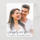 Modern budget-friendly all-in-one wedding invitation featuring elegant typography on the front and your photo overlayed with "happily ever after" in a chic script with swashes and your first names and wedding date joined with a heart on the back. Input your wedding website address to create a QR code for your guests to scan to RSVP online and to obtain additional wedding details such as accommodations and directions. This budget semi-gloss paper is similar in weight to photo paper. A larger 5x7 traditional card stock version is also available (message us for the link).