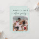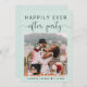 Elegant light mint green elopement or private wedding announcement and wedding reception invitation. The front features your wedding photo and "Happily Ever After Party" in a mix of modern typography and a chic script with swashes. Under your photo, add your first names and wedding date. On the back, input your wedding website URL address to create a QR code for your guests to scan for all the details and to RSVP online, personalise your announcement and reception details and add your names in a signature-like script.