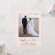 Elegant light pink elopement or private wedding announcement and reception invitation that features your photo and "happily ever after" in a chic script with swashes. On the reverse, personalise your wedding announcement, add a reception or party invitation, input your wedding website address to create a QR code for guests to scan to RSVP online and sign your married names in a signature-like script.