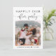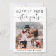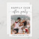 Elegant elopement or private wedding announcement and reception invitation. The front features your wedding day photo and "Happily Ever After Party" in a mix of simple typography and a chic script with swashes. Under your photo, add your first names and wedding date. On the reverse side, input your wedding website URL address to create a QR code for your guests to scan for all the details and to RSVP online, personalise your announcement and reception details and add your names in a signature-like script.