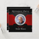 Modern black and red with silver grey accents. Brushed metal and mesh pattern makes a perfect choice for a man's retirement party. Upload your photo to replace the photo template shown. Add Name to the card front and then fill in your event information on the matching back design with your information.