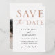 Foil pressed Wedding Save the Date with a modern elegant vibe. Include your photo on the backside or delete and leave blank. Edit with your wording and select from three different foil colours including gold, silver and rose gold.