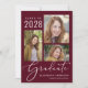 Elegant burgundy red graduation party invitation featuring a 3 picture photo collage and "Graduate" in a stylish white script, and the grad's name, class year and school or university in simple modern white typography. On the reverse side, add an additional photo and the graduation party details.