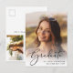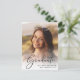 Celebrate your graduate's achievements with this stylish graduation announcement and grad party invitation postcard. Her photo fills the card with "Graduate" overlayed on top in an elegant script; underneath, add her name, school and class year. On the reverse side, add an additional photograph and the grad party details.
