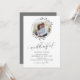 This elegant photo wedding invitation features your picture at the top surrounded by a simple charcoal grey wreath. It's paired with a romantic calligraphy script.
