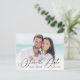 Stylish and whimsical vertical card to thank your guests for being a part of your wedding day. This customisable thank you postcard features white modern calligraphy overlay. This design is also available in other cards.