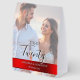 The table number, set in graceful calligraphy across the lower portion, adds a sophisticated yet understated flourish. On the red band that spans the lower third, your names and special date appear in polished white lettering—offering a stylish contrast that feels both timeless and beautifully curated.