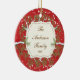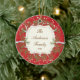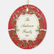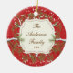 Unique Family Christmas Ornament featuring a beautiful snow covered pine tree branch frame set on a red background. Personalise with your information and date and you're all set to go! Wonderful dated keepsake gift for your first christmas and a great addition to you christmas ornament collection.