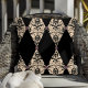 This stunning and luxurious design seamlessly blends classic and modern elements, transforming any space with its refined charm. The background features a delicate light pink damask pattern, evoking a sense of timeless elegance and grace. Against this intricate canvas, bold black diamond shapes create a striking contrast, infusing the pillow with a touch of sophistication and contemporary flair. Adding depth and regal charm to the composition, splashes of rich purple complement the design. Embellished with jewelled buttons that sparkle like precious gems, this visually captivating masterpiece bestows a sense of grandeur and opulence upon any room it graces.