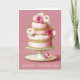 This elegant birthday card features a hand-painted style illustration of a pink floral cake accented with soft gold details. The layered cake design, surrounded by delicate roses and greenery, creates a warm and celebratory feel that’s both classic and refined. A beautiful choice for wishing someone a happy birthday in a thoughtful and memorable way.