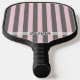 Elegant Pink and Gray stripes Pickleball Paddle with minimalist typography. Personalize the Pickleball Paddle with a name for a personal touch.