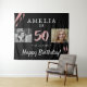Elegant Pink Watercolor Black 50th Birthday Party 2 Photo Backdrop. Use the tapestries as a backdrop for the 50th birthday party. Add your photos - old photo and new photo. Personalize name, date and age.