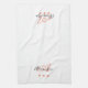 Elegant Pink Black Script Name Monogram Tea Towel